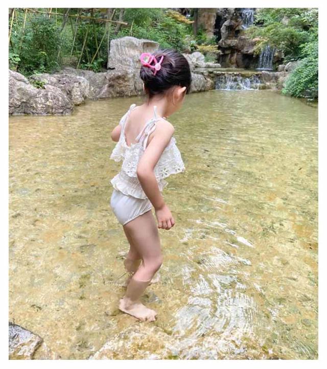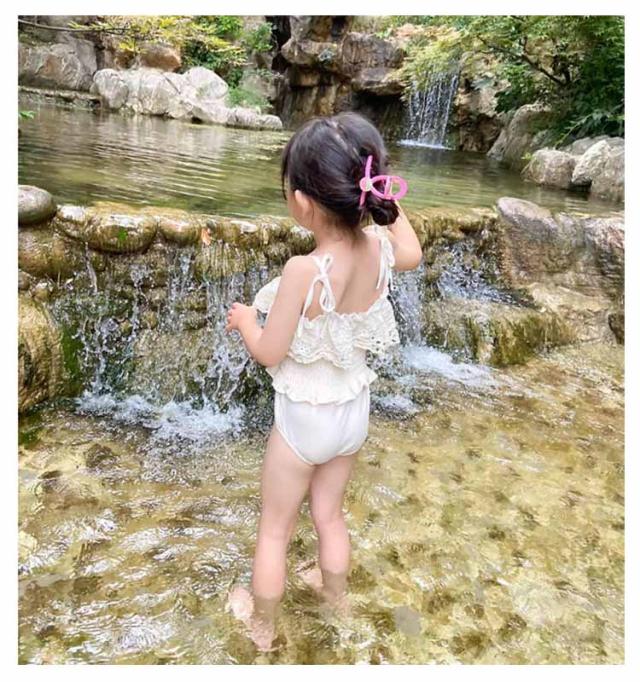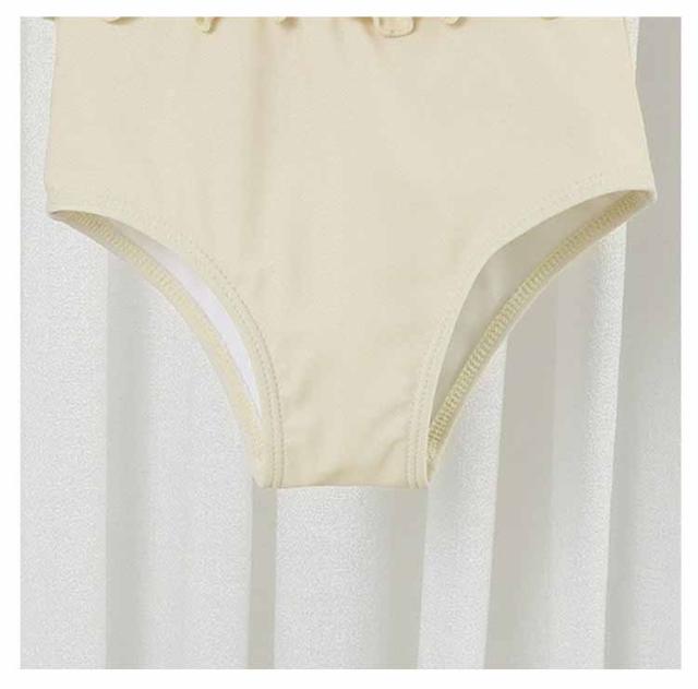 2点セット 子供用 女児 ベビー水着 女の子 スイムキャップ付き フリル水着 スイムキャップ付き キッズ水着 韓国ファッション 女の子 水着 75 ワンピース 女の子 キュート ベージュ プール授業 みずぎ 水着