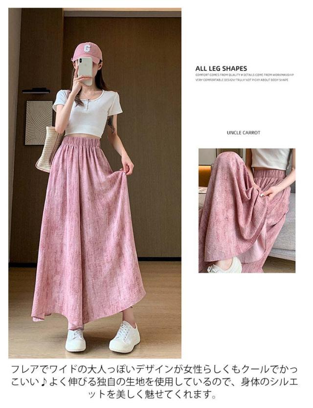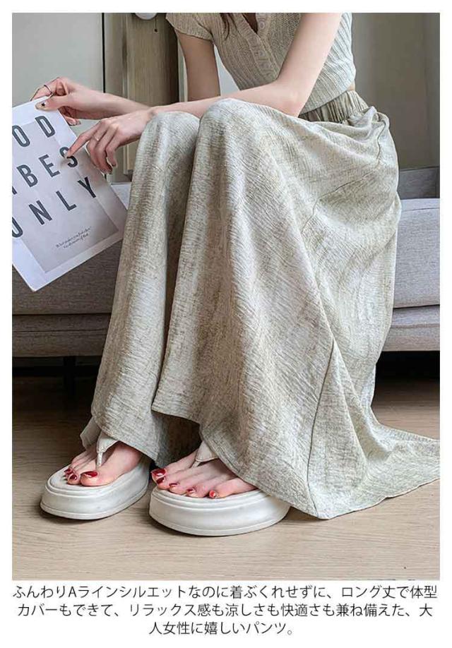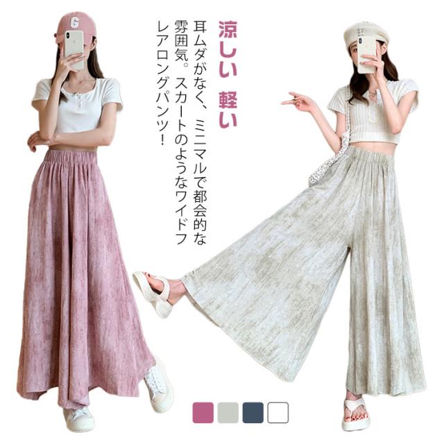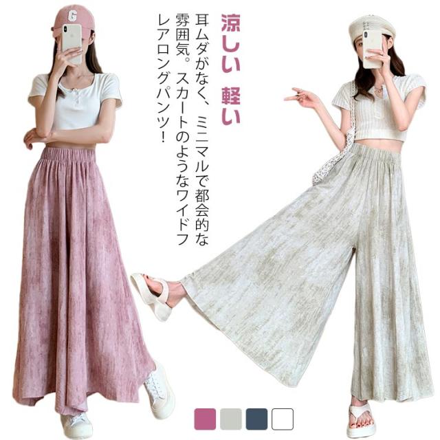 落ち感 ワイドパンツ 美脚 レディース ロングスカート スカート風 スカンツ 体型カバー パンツ ひんやりパンツ ワイドパンツ 涼しい 軽い ウエストゴム 高見え スカーチョ ゆれ感 ワイドパンツ 春夏 ガウチョパンツ
