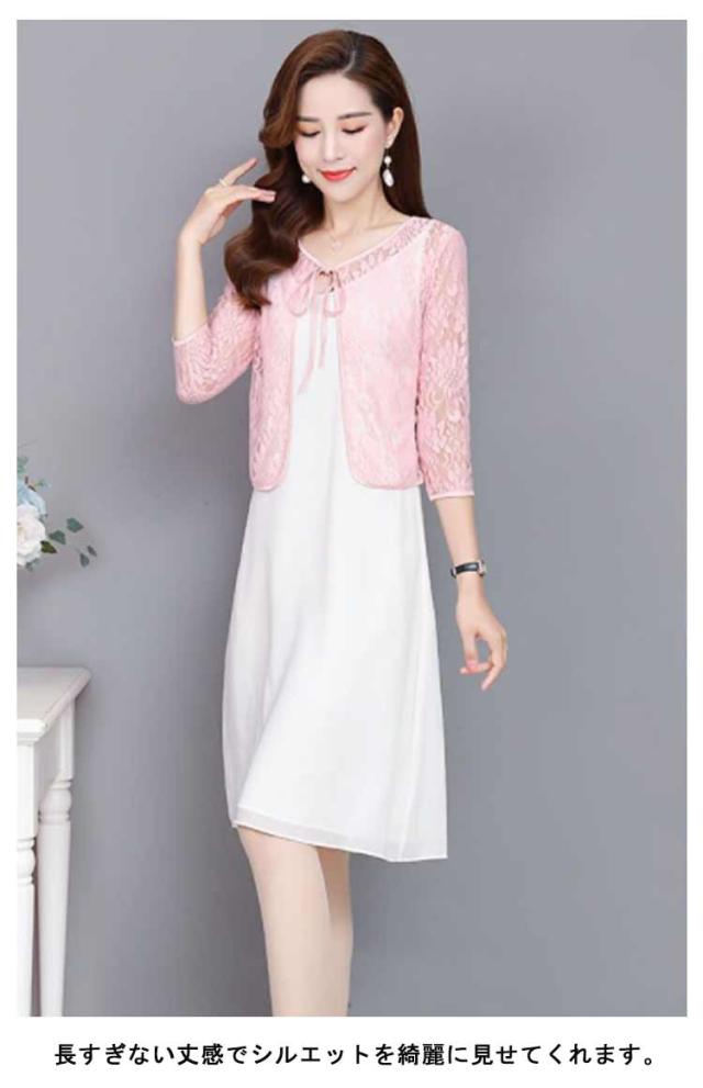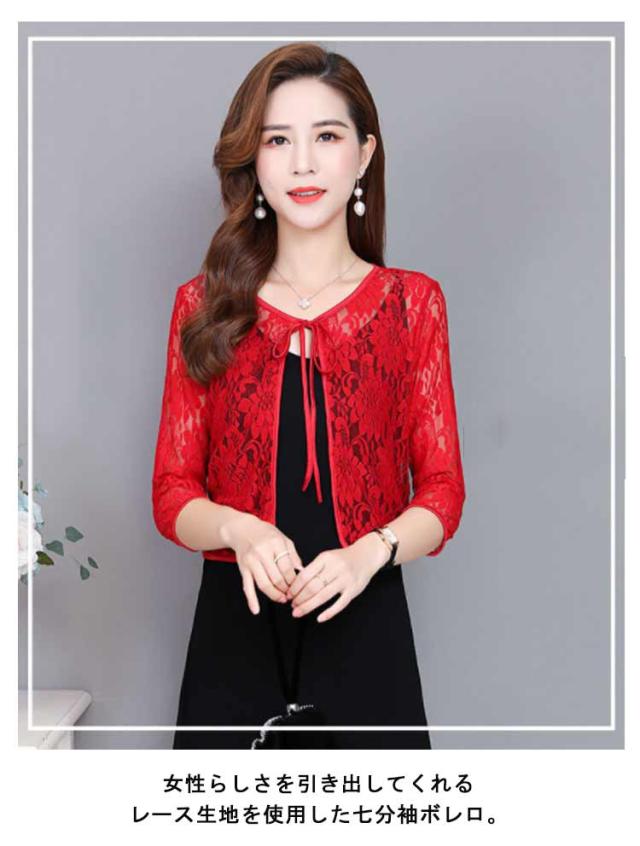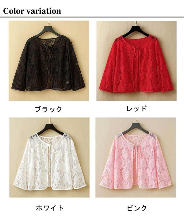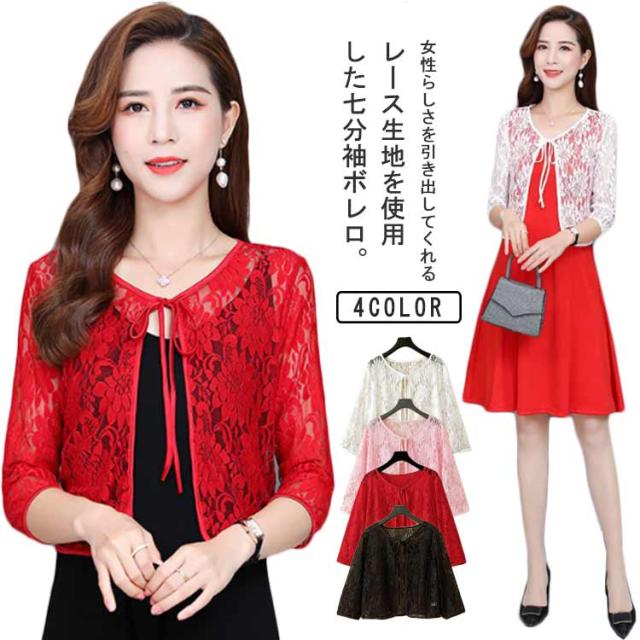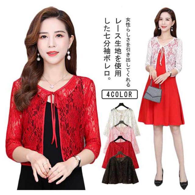レディース ボレロ ショート丈 夏用 レースカーディガン リボン UVカット シアー 羽織り レースカーデ サマーカーディガン レース 透け感 レース トップス 七分袖 冷房対策 春夏 薄手 レースボレロ ゆったり きれいめ おしゃれ 黒 白 ピンク 花柄