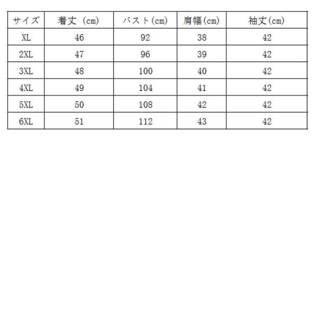 | サイズについての説明 | XL 2XL 3XL 4XL 5XL 6XL |