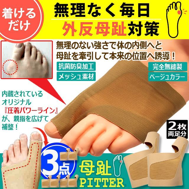 3点 外反母趾 足の親指 サポーター ヒール パンプス 靴(無理なく外反母趾対策!親指広がる圧着パワーライン!母趾ピッター 3点)