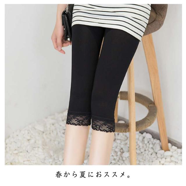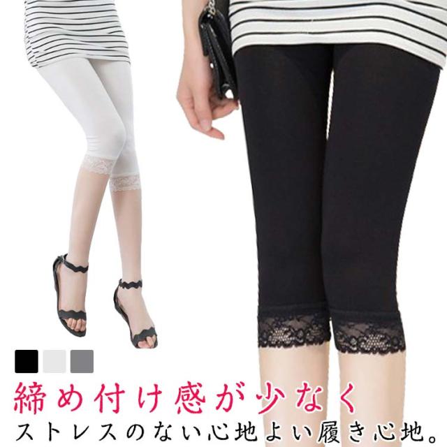 夏用 7分 クロップド レディースパンツ すそレース レディース レギンス レディースパンツ ストレッチレギンス レギンス 黒 ストレッチレギンス パギンス インナー 無地 ルームウェア スパッツ スキニー 夏レギンス 薄手 無地 美脚 ストレッチ 涼しい