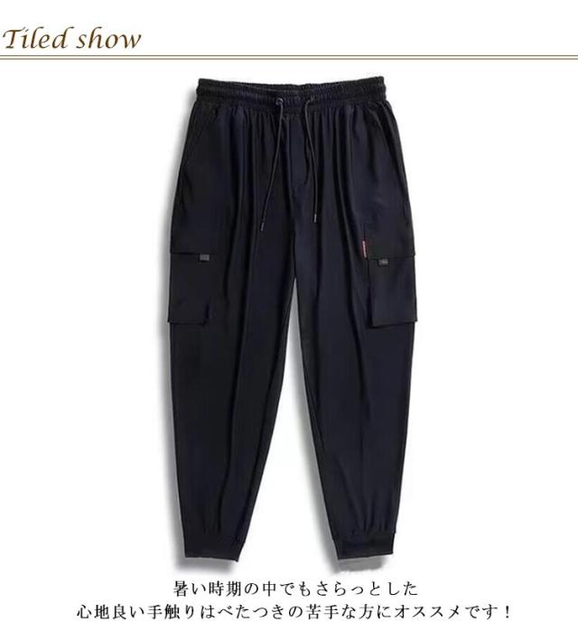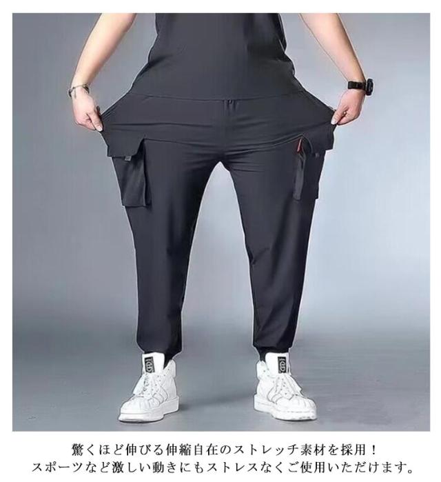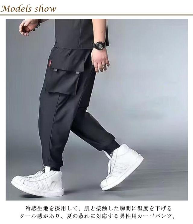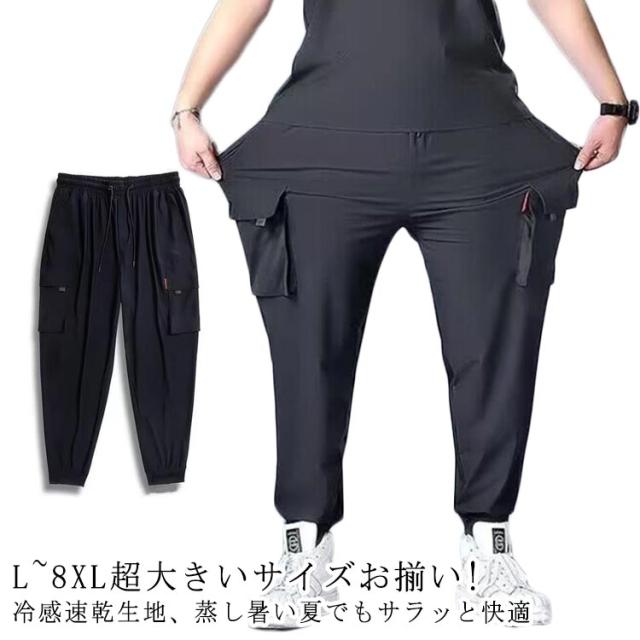 メンズ 夏 薄手 接触冷感 カーゴパンツ 大きいサイズ パンツ ジョガーパンツ ひんやり 涼しい 冷感パンツ 大きいサイズ ゆったり 作業着 吸水速乾 通気性 ストレッチ ポケット ウエストゴム スポーツウェア カジュアルパンツ 軽量 無地