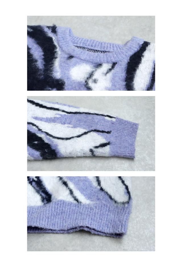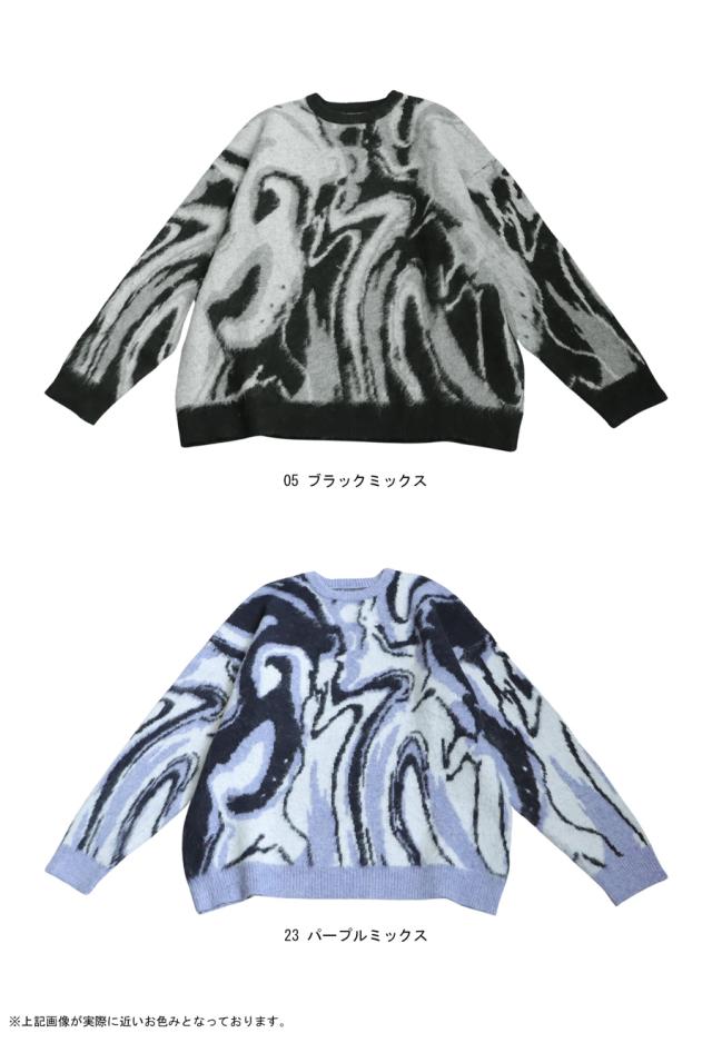 pn-00509z 長袖 ジャガード 柄 丸首 クルーネック ゆったり プルオーバー 柄編み ニットトップス ジャガードトップス セーター デザインニット 高級感 ウール混 大きいサイズ
