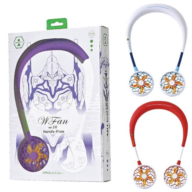 エヴァンゲリオン ネックファン ダブルファン ハンズフリー 扇風機 首かけ 扇風機 ファン USB 充電 初号機 2号機 レイモデル ツインネックファン