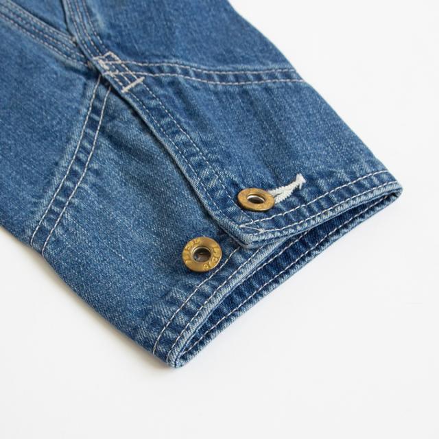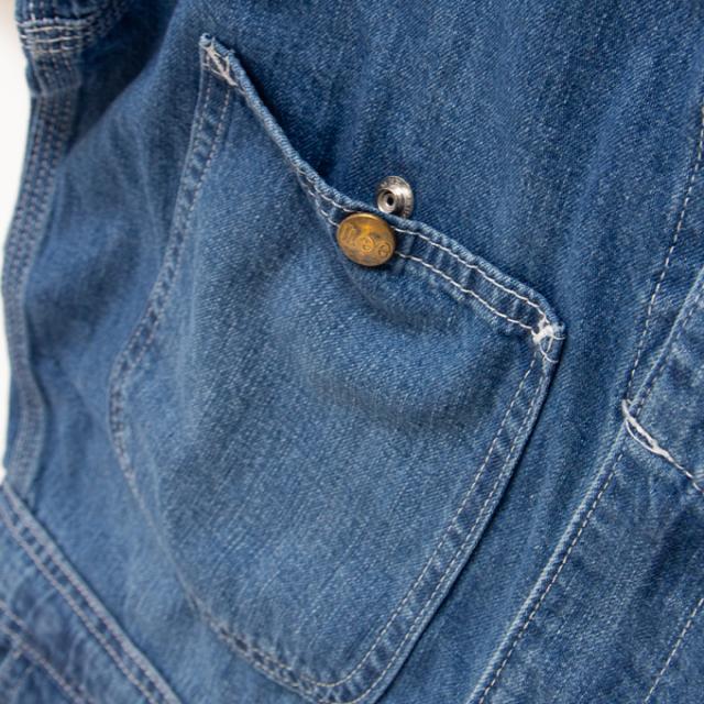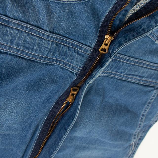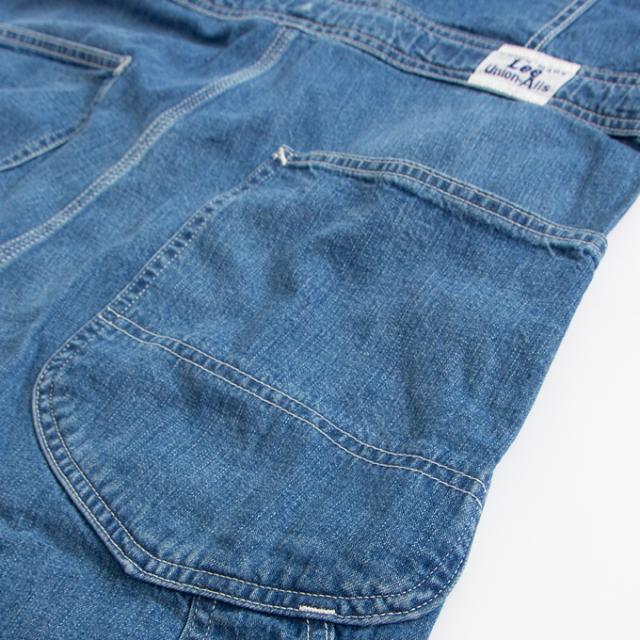 Lee独特の製法で縫い上げられた本格使用のオールインワンです。UNION-ALLSタグ、ベルト帯、三本針ステッチ、ドーナツボタン等の基本的な仕様は古着のUNION ALLSを踏襲。ファスナーは上下開閉式にすることで着脱性を向上させています。
