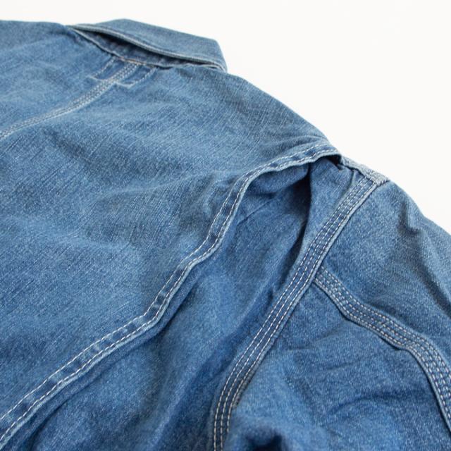 Lee独特の製法で縫い上げられた本格使用のオールインワンです。UNION-ALLSタグ、ベルト帯、三本針ステッチ、ドーナツボタン等の基本的な仕様は古着のUNION ALLSを踏襲。ファスナーは上下開閉式にすることで着脱性を向上させています。 |