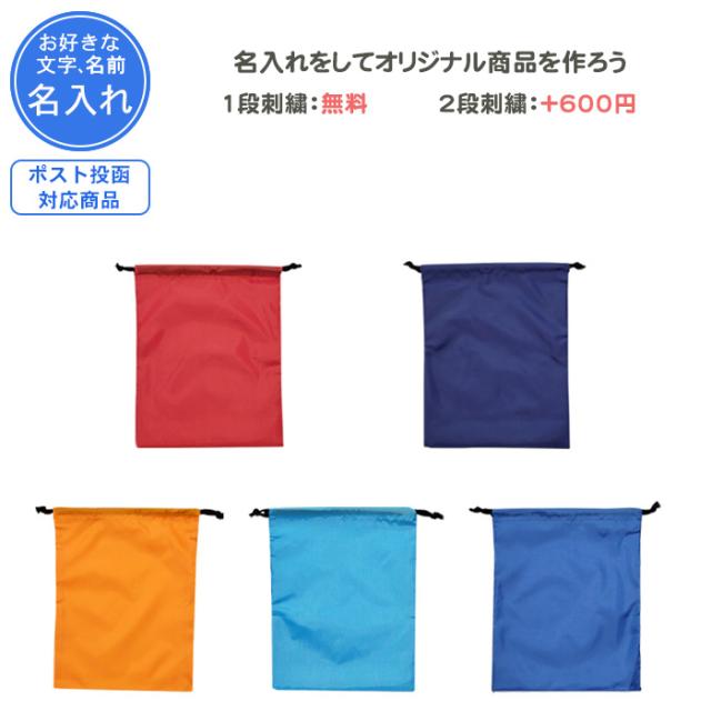 ※こちらの商品は、代引きを除いたお支払方法の場合、ポスト投函になることがございます。 刺繍加工をしてオリジナル商品をつくちゃおー♪ チーム名、名前、好きな言葉などネームを入れることができます!! 卒団、記念品、プレゼントにおすすめです。 1段刺繍代:無料 2段刺繍代:+600円(税込) スポーツロゴ代(1個):+300円となります。(刺繍文字の糸と同色になり、刺繍文字の後ろに入ります。) ※文字数は、1段8文字までとなります。 ※こちらの商品は、代引きを除いたお支払方法の場合、ポスト投函になることがございます。無地のシューズ袋。バスケ、バレーボール、サッカー、野球、ランニング、マラソン、バドミントン、テニス、卓球、フットサル、テニス、バドミントン、柔道、剣道などにスポーツ全般に使えるので、シューズ入れの他にも衣類の収納に便利です。 サイズ:W34cm×H43cm 素材:ポリエステル 本体カラー:レッド、ネイビー、オレンジ、ターコイズ、ブルー 本体の紐のカラー:全てブラック