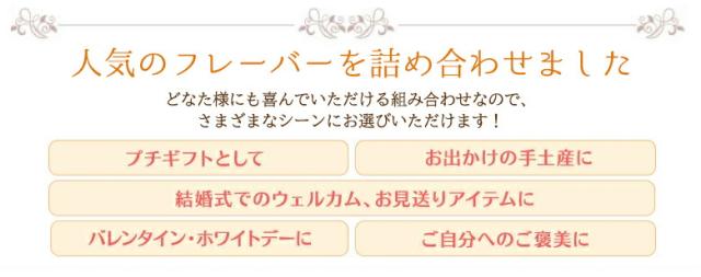 | 原材料 | 【和三盆】小麦粉(国内製造)、バター、アーモンドパウダー、食用精製加工油脂、和三盆糖、砂糖、粉糖(ぶどう糖、コーンスターチ、植物油脂、加工油脂)、塩/乳化剤、ステアリン酸Ca、リン酸Ca、香料、(一部に小麦・乳成分・アーモンドを含む) 【チョコ】小麦粉(国内製造)、バター、アーモンドパウダー、砂糖、食用精製加工油脂、ヘーゼルナッツパウダー、ココアパウダー、粉糖(ぶどう糖、コーンスターチ、植物油脂、加工油脂)、粉糖(砂糖、コーンスターチ)、塩/ベーキングパウダー、乳化剤、ステアリン酸Ca、リン酸Ca、香料、(一部に小麦・乳成分・アーモンドを含む) 【紅茶】小麦粉(国内製造)、バター、アーモンドパウダー、砂糖、食用精製加工油脂、ヘーゼルナッツパウダー、粉糖(ぶどう糖、コーンスターチ、植物油脂、加工油脂)、粉糖(砂糖、コーンスターチ)、紅茶、塩/乳化剤、ステアリン酸Ca、リン酸Ca、香料、(一部に小麦・乳成分・アーモンドを含む) 【苺】小麦粉(国内製造)、バター、アーモンドパウダー、砂糖、食用精製加工油脂、粉糖(ぶどう糖、コーンスターチ、植物油脂、加工油脂)、粉糖(砂糖、コーンスターチ)、いちごパウダー、塩/乳化剤、ステアリン酸Ca、リン酸Ca、香料、(一部に小麦・乳成分・アーモンドを含む) 【抹茶】小麦粉(国内製造)、バター、アーモンドパウダー、砂糖、食用精製加工油脂、粉糖(ぶどう糖、コーンスターチ、植物油脂、加工油脂)、粉糖(砂糖、コーンスターチ)、抹茶、塩/乳化剤、ステアリン酸Ca、リン酸Ca、香料、(一部に小麦・乳成分・アーモンドを含む) 【きなこ】小麦粉(国内製造)、バター、アーモンドパウダー、砂糖、食用精製加工油脂、粉糖(ぶどう糖、コーンスターチ、植物油脂、加工油脂)、粉糖(砂糖、コーンスターチ)、きな粉、塩/乳化剤、ステアリン酸Ca、リン酸Ca、香料、(一部に小麦・乳成分・アーモンド・大豆を含む) |