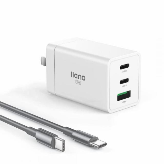 llano 65W PD充電器 タイプc 充電器(GaN Swift搭載/世界最小クラス/3ポートUSB-C急速充電器/折り畳み式/超コンパクト)【PD3.0/QC4.0/PPS規格対応/PSE認証済/PIチップ採用】100W USB-Cケーブル付き Ma