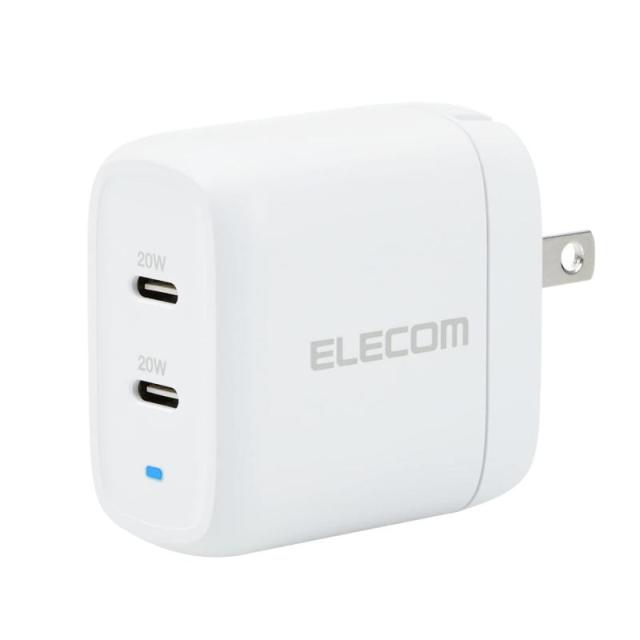エレコム 充電器 USB PD対応 合計40W 2ポート Type-C ×2 折りたたみ式プラグ 2台同時充電 【 iPhone SE3 / 13 / 12 / iPad / Android 各種対応】 ホワイト MPA-ACCP25WH