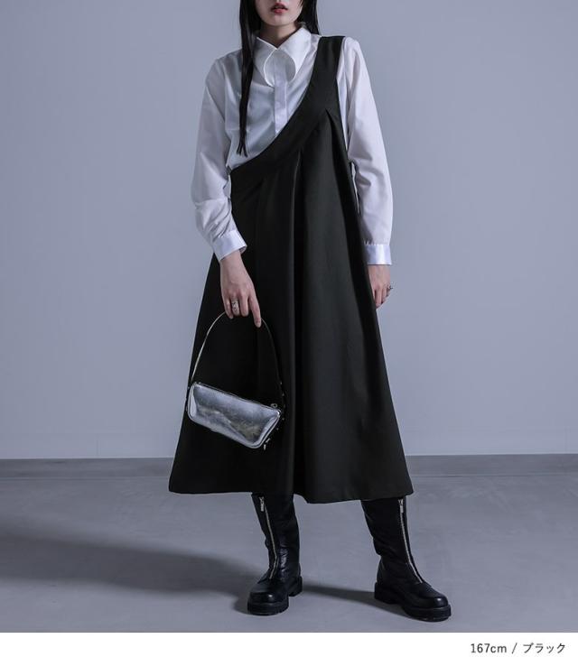 『ワンショルダースカート』※メール便可※【10】スカート レディース ボトムス ロングスカート ロンスカ ロング丈 ミモレスカート ミモレ丈 ワンショルダー ワンショル タック Aライン モード きれいめ 無地 ゆったり 体型カバー 大きいサイズ