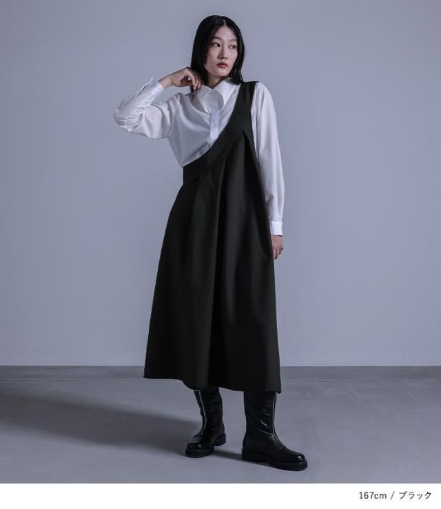 ■デザイン ゆるっと着られるワンショルダーデザインのスカート。太めの肩紐がモードな印象をプラスします。タックをしっかり取り、表情のあるシルエットに仕上げました。 ■素材 さらりとした肌触りで落ち感のある、キレイめな印象のポリエステル生地。程良い厚みで、ロングシーズンご着用いただけます。 ■コーディネート インにシンプルなトップスを合わせるだけでワンショルダーが引き立ち、モードな雰囲気に。無地なので柄物やデザインもののアイテムとも好相性な、着回し優秀なアイテムです。 |