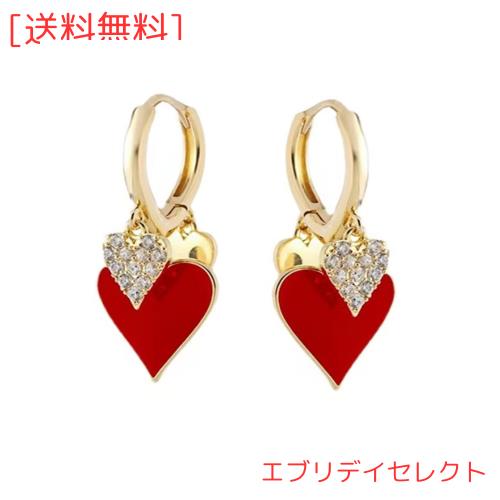 HAPVITAL 揺れるパールピアス レディース 人気 安心の 金属 アレルギー対応ピアス 18金可愛いキラキラ ファッション (かわいい赤いハート