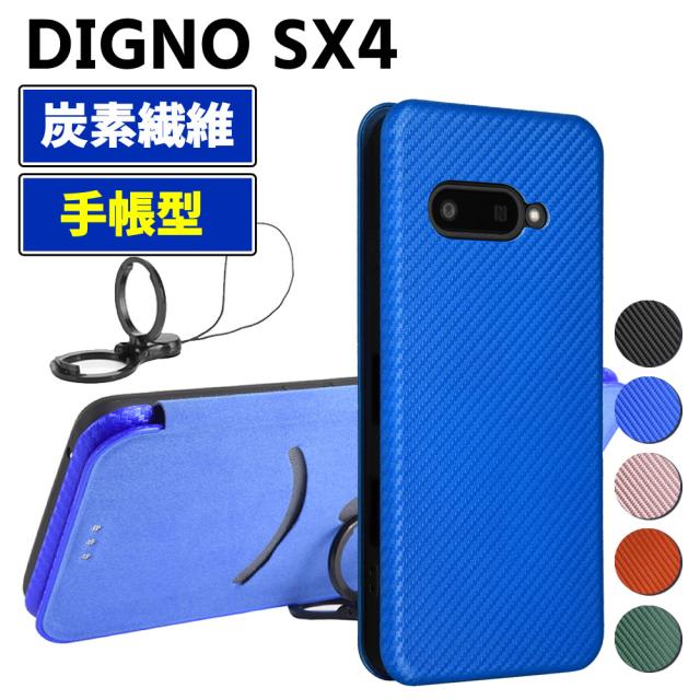 DIGNO SX4手帳型薄型カーボンファイバースマートフォン用ケースは、スタイリッシュで機能的なデザインが魅力です。