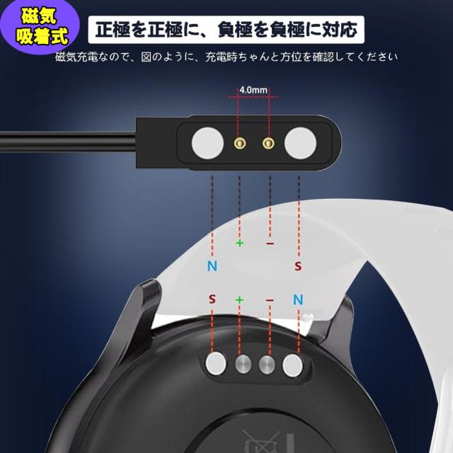 スマートウォッチ 充電ケーブル 磁気 吸着式 充電器 USB充電器 2pin 2.84mm 4.0mm 対応 チャージング ケーブル 2ピン間の間隔2.84mm/4mm