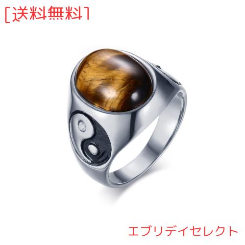 ◆商品名:[Rockyu] リング メンズ ステンレス 黄 指輪 19号 印台 指輪 太極 陰陽図 指輪 虎目石指輪 カジュアル クリスマス プレゼント