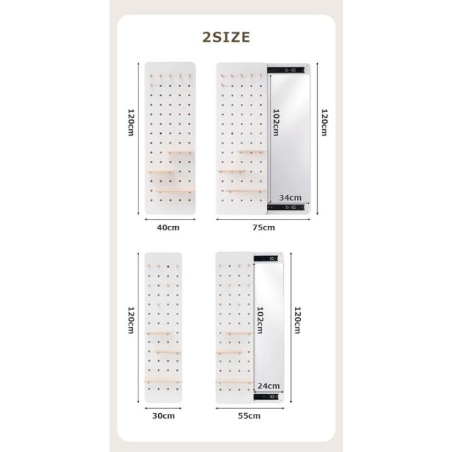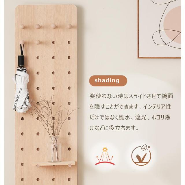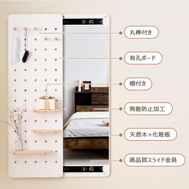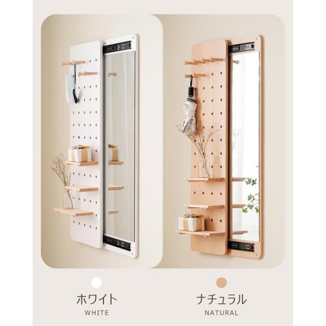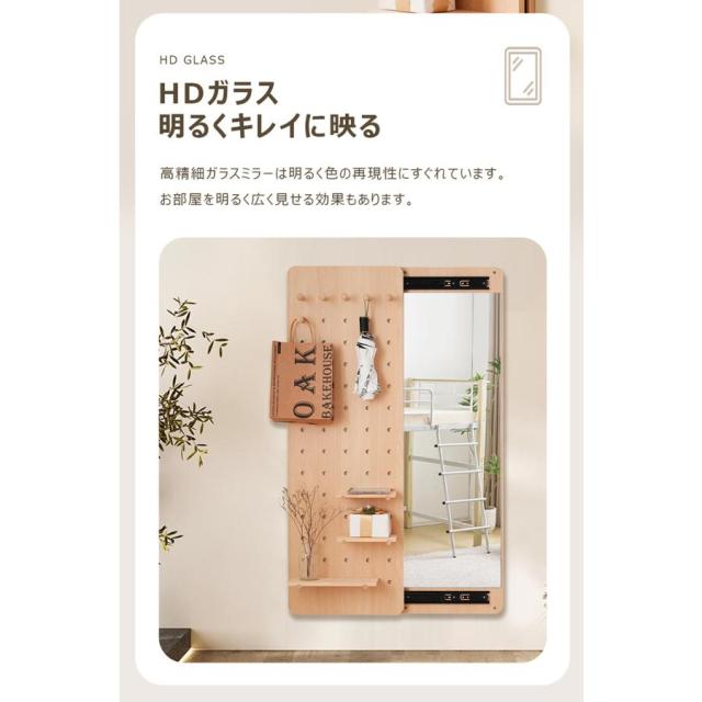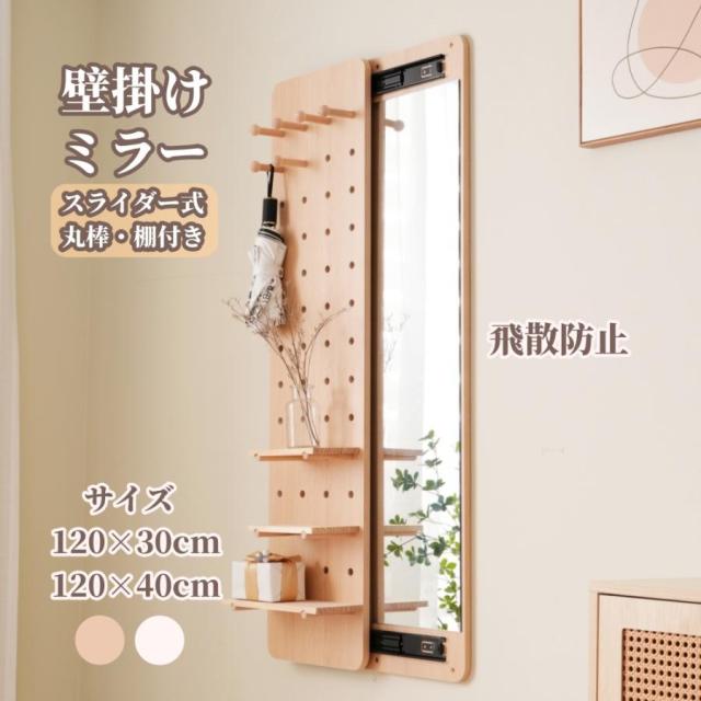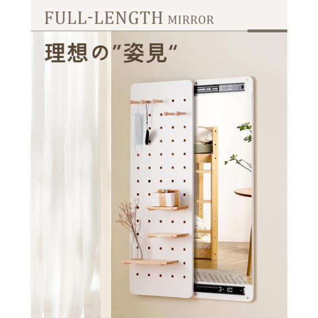 鏡 壁掛け 姿見鏡 ミラー 鏡 全身 おしゃれ 収納ボード付き ペグボード飛散防止加工 インスタ映え 木製 40*120cm