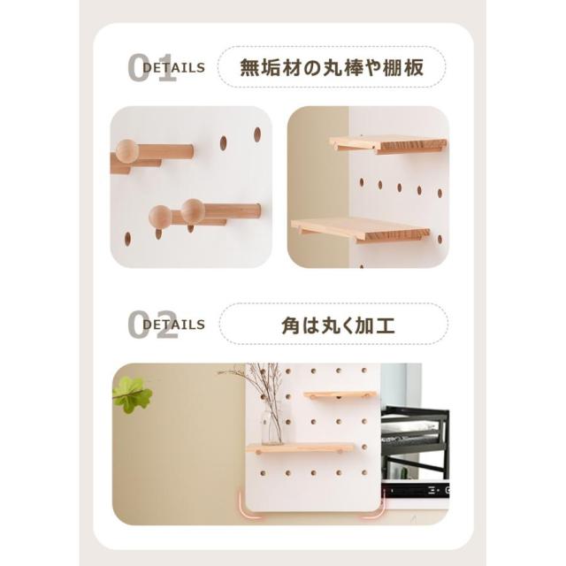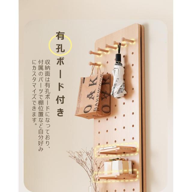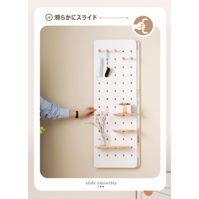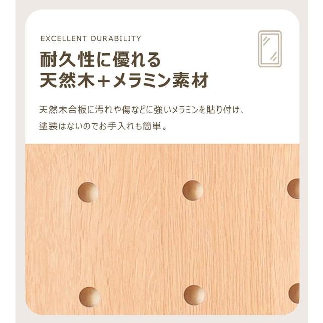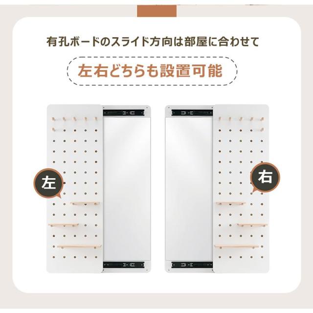 【有孔ボード付き】収納面は有孔ボードになっており、付属のパーツで棚位置など自分好みにカスタマイズできます。有孔ボードのスライド方向は部屋に合わせて左右どちらも設置可能