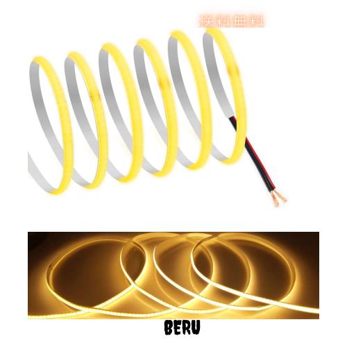 ◆商品名:【RYE】 COB テープライトLEDストリップライトフレキシブル 高密度 幅5mm 隠れたLEDテープライト1m 320LEDs/m 電球色2700K DC5V 180°発