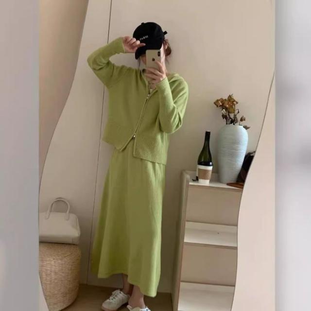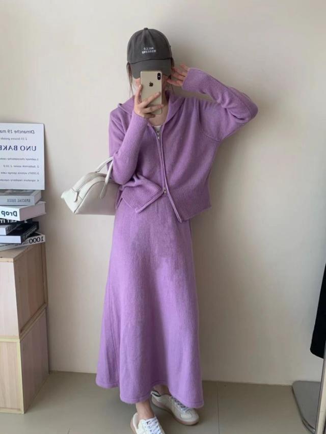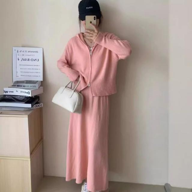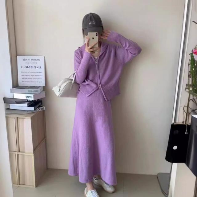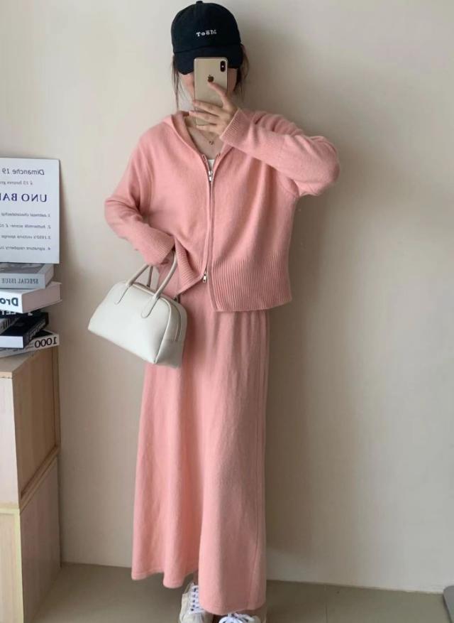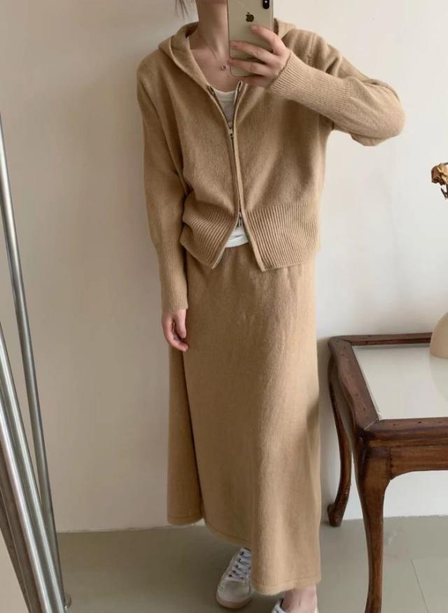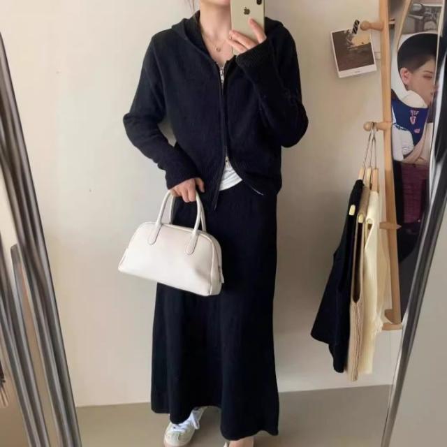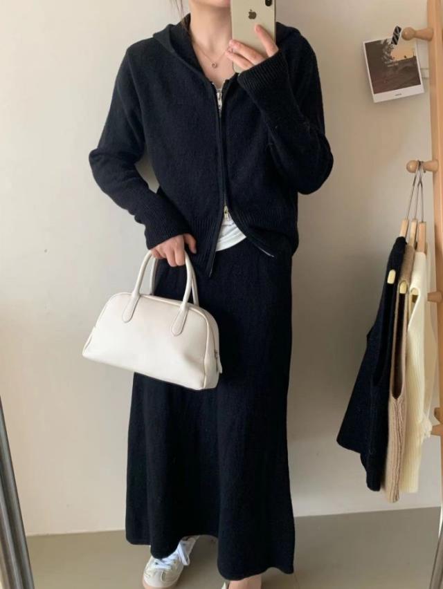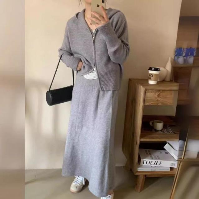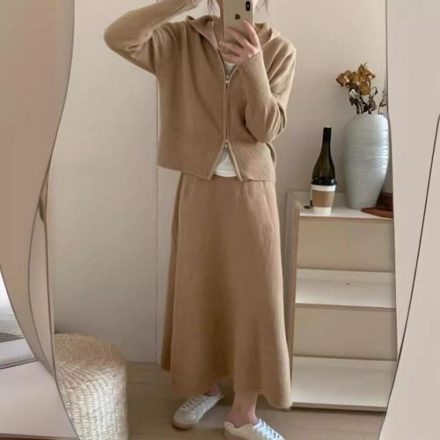 アスレジャーニットスーツ レディース秋冬 怠惰な風 フード付きカーディガン ジャケット スカート ファッション セット
