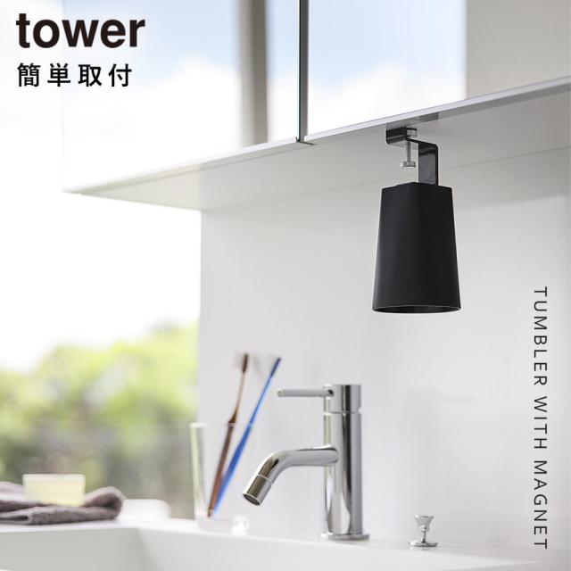 洗面戸棚下マグネットタンブラー タワー 山崎実業 tower 洗面所 コップ 歯磨き 逆さ マグネット 浮かせる 戸棚下 おしゃれ モノトーン ブラック ホワイト 1737 1738