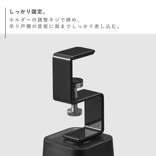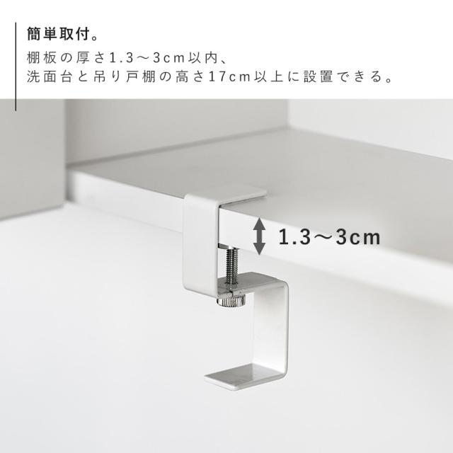 1.3〜3cmの厚さまでの洗面吊り戸棚に調整ネジで設置でき、しっかり固定できます。