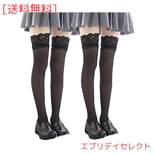 [SHUCLASS] ニーハイソックス レース付きニーハイ ハイソックス ロリ系 レディース 可愛い cosplayや制服用 オーバーニーソックス 通学
