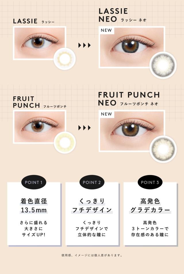 フルーツポンチ ライトベージュが色素の薄い瞳を生み出し、外国人のような印象を与えてくれるレンズ