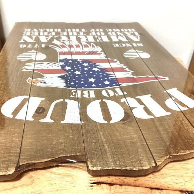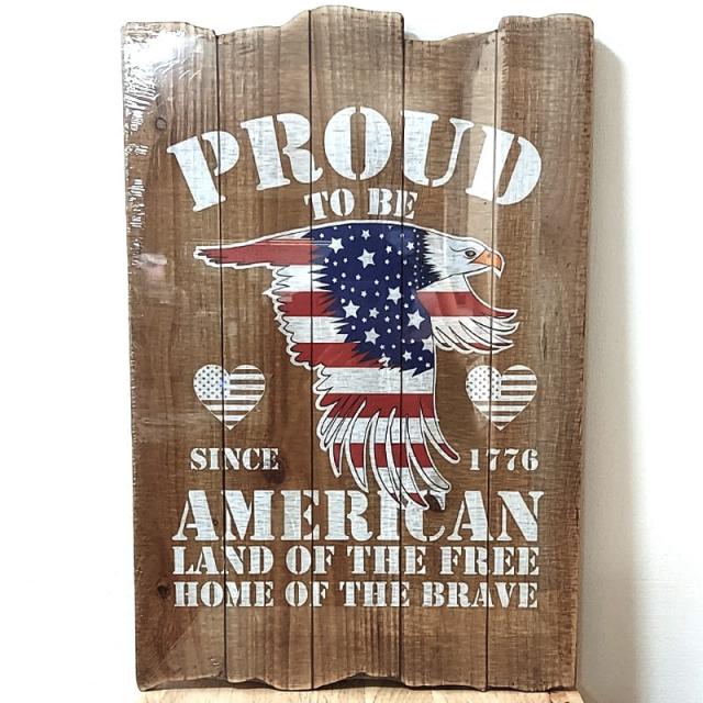 ウッドボード 看板 アンティーク PROUD TO BE AMERICAN 木製 アメリカン ガレージ キャンプ おしゃれ リビング 壁掛け