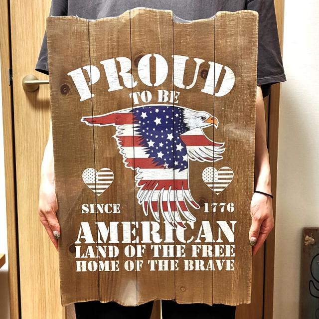 「木製看板 ”PROUD TO BE AMERICAN”」