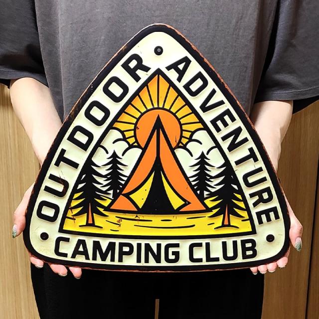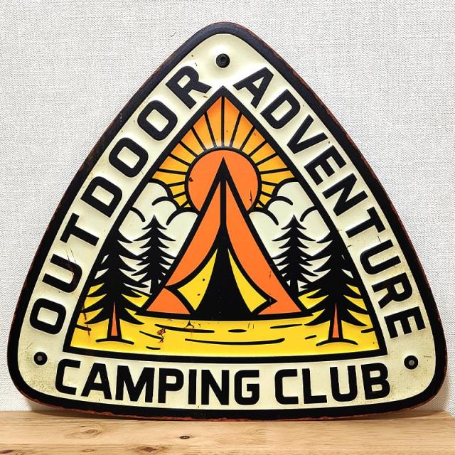 ブリキ看板 おしゃれ キャンプ アンティークプレート アメリカン ADVENTURE CAMPING CLUB 壁飾り ビンテージ 雑貨
