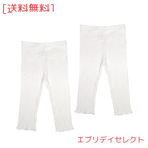 [Mon Ange] 女の子 7分丈 レギンス 2枚セット 夏 薄手 リブ素材 ストレッチ 綿 メロウフリル リブレギンス (ホワイト, 140)