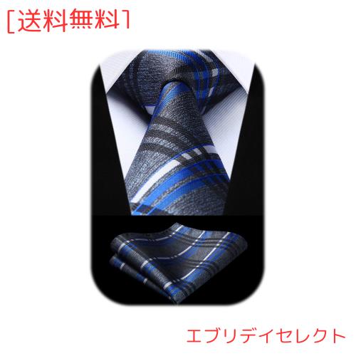 ◆商品名:[Enlision] ビジネス ネクタイ チーフ シルク ブランド チェック おしゃれ 柄 セット メンズ 結婚式 就活 高級 グレー/ブルー