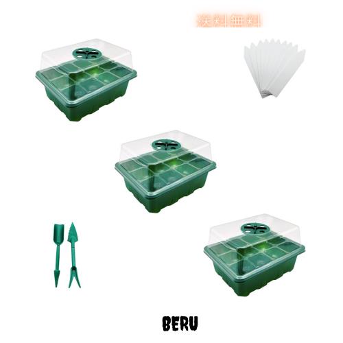 ◆商品名:育苗ポット 3個セット 育苗トレイ 育苗箱 12穴 種子トレイ 発芽?育苗セット 種まきハウス 苗箱 種まき器 育苗ボックス 透明カバー 便利性