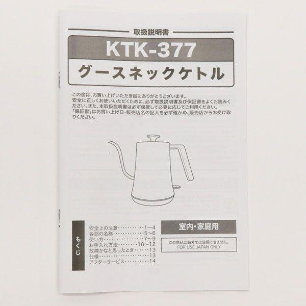 ヒロコーポレーション HIRO CORPORATION ヒロ・コーポレーション 電気ケトル 卓上ケトル ケトル 電気 湯沸かしケトル ポット 湯沸かし器 湯沸かし 沸かす 沸騰 給湯 湯 お湯 水 コーヒー 紅茶 飲み物 ドリンク ノズル グースネックノズル かわいい おしゃれ 1リットル 1000ml 1000cc 1000ミリリットル KTK-377 KTK377