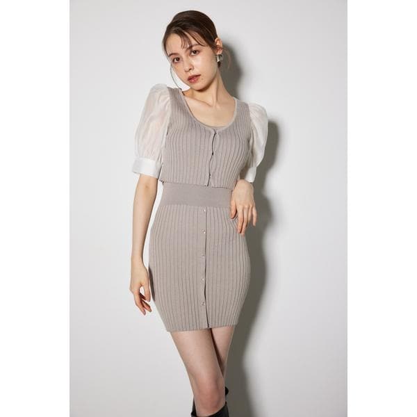 【異素材コンビがポイントのカーディガンセットのニットミニワンピース】【Design】インナーのタンクニットワンピースとクロップド丈のシアー素材が袖にドッキングしたカーディガンがセットになったタイトニットワンピース。スタイルが良く見えるようにワンピースのウエストの中心にカーディガンの裾がくるような着丈設定にし簡単にスタイルアップが叶います。カーディガンは程よく透け感のあるオーガンジーの生地を採用し肌透けで女性らしさを演出しました。ワンピースとカーディガンは別々でも着られるので万能です。【Color】上品で女性らしい雰囲気のBEGと、トレンドの黄味のあるL/PNKと、万能に着やすいBLKの3色展開です。■透け感:カーディガンの袖だけあり■光沢感:カーディガンの袖だけあり■伸縮性:ニットの部分あり■裏地:なし