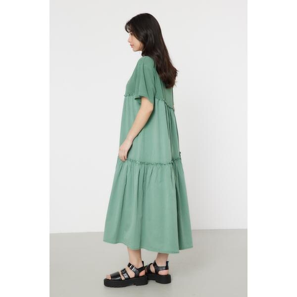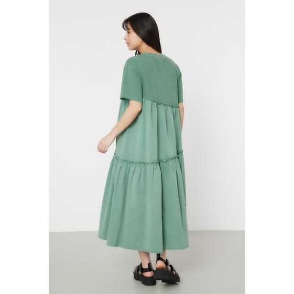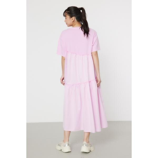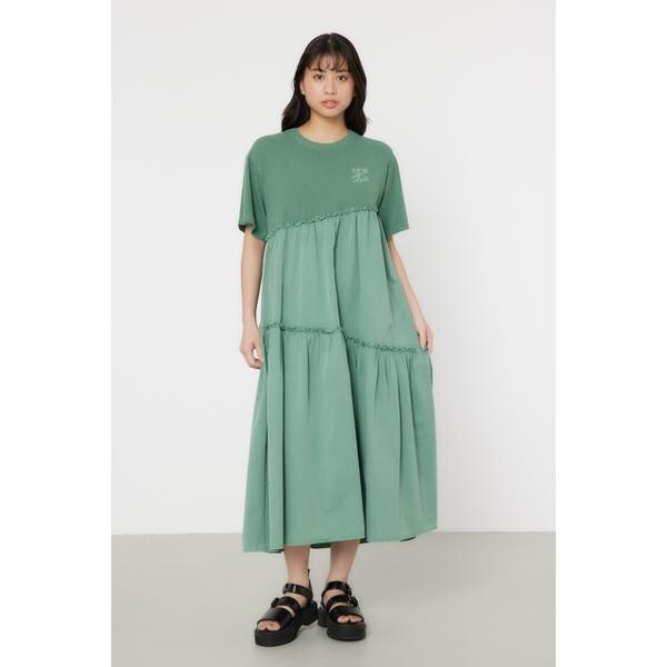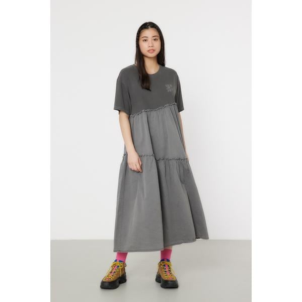 カットソーと布帛がドッキングされたデザインワンピース。ピグメント加工を施し、甘くなりすぎない印象に。1枚で着ても様になるワンピースですが、布帛のボトムやデニムをレイヤードするのもおすすめ。同色でさりげなく施された胸元の刺繍がポイント。■ポケット:なし■裏地:なし■透け感:なし■伸縮性:あり※プリントの風合いやカラー及び位置には個体差が有りますが、二次加工特性によるものです。プリントを重ねるとくっついたり色移りの可能性がありますので、注意してください。プリント商品の為、着用・洗濯によリ白化する場合がございます。