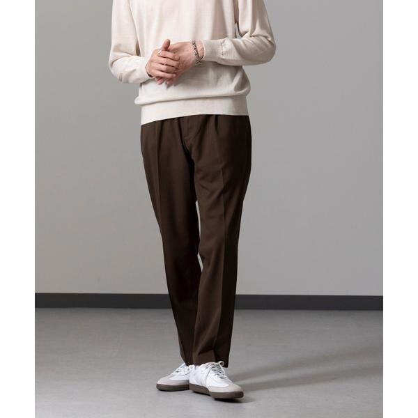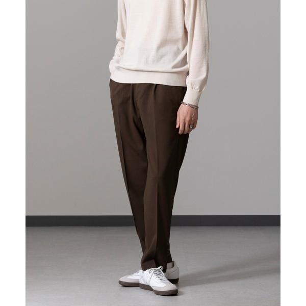裾に向かってテーパードがかったシルエットとタック入りのデザインで、キレイなシルエットのリラックスパンツに仕上げた1本。