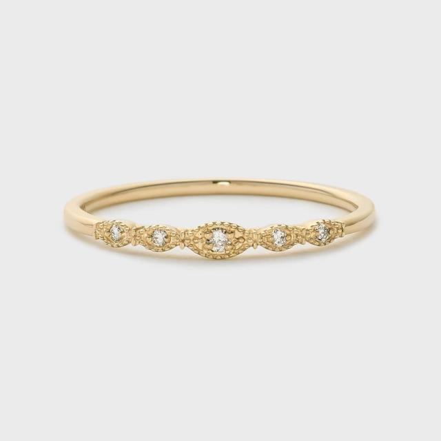 繊細な刻み模様でクラシカルに仕立てたリング。ダイヤモンドの輝きと丁寧に施された地金装飾が上品な手元を演出します。※サイズ直しプラスマイナス2号迄。※天然石や天然素材を使用しているものは、サイズ・色味・風合いの違いや、若干の傷、内包物の有無などに個体差があります。予めご了承ください。