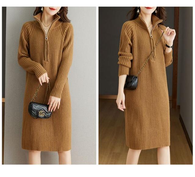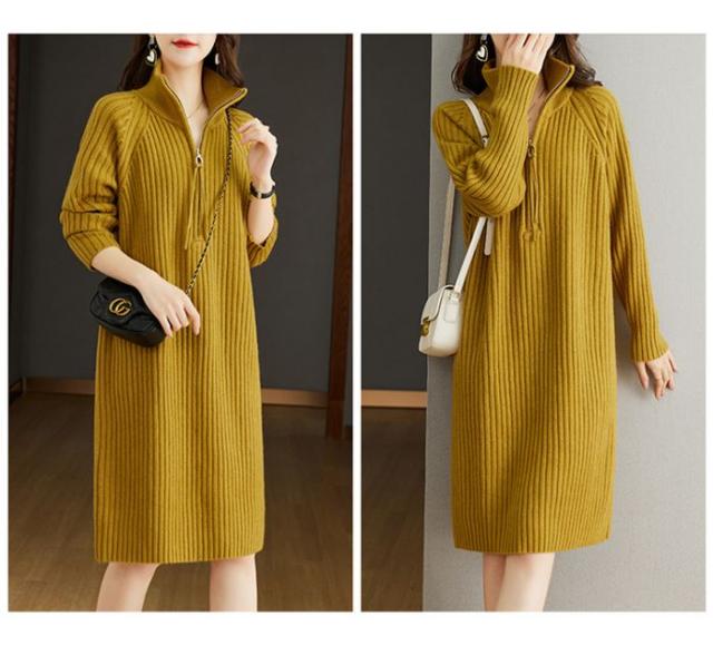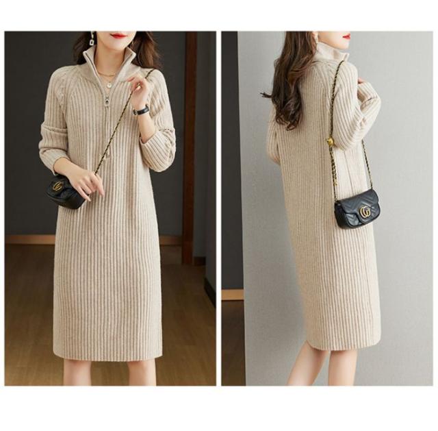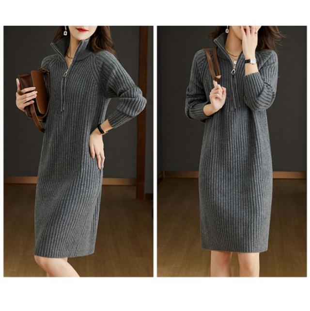 秋と冬のミディフード付きニットドレス女性韓国風バージョンのファッションカジュアルスウェットシャツルーズインナーセータードレス