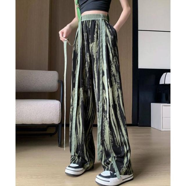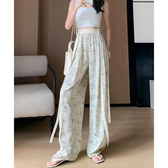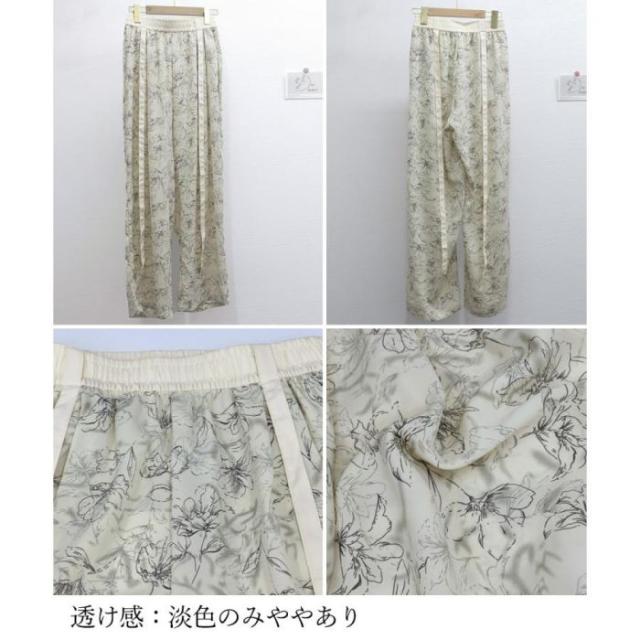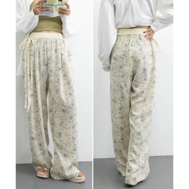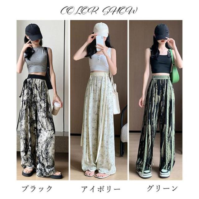 総柄ワイドパンツレディースウエストリボン
