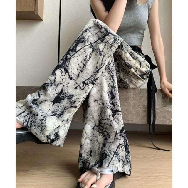 すらりとしたシルエットで脚を長く見せてくれる総柄ワイドパンツ