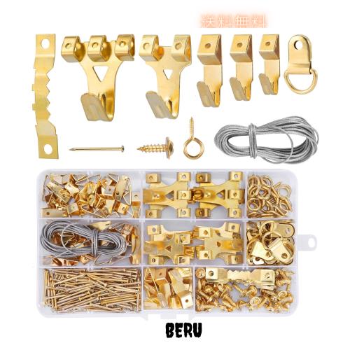 お得な282点セット:3爪フック2つ、最大耐荷重75lbs(34kg)。2爪フック8つ、最大荷重40lbs(18kg)。大きな1爪フック10つ、最大荷重30lbs(14kg)。中型の1爪フック15つ、最大荷重20lbs(9kg)。小さな1爪フック25つ、最大荷重10lbs(4kg)。のこぎり歯10つ。Dリング10つ。スクリューリング10つ。ネジ70つ。釘100つ。