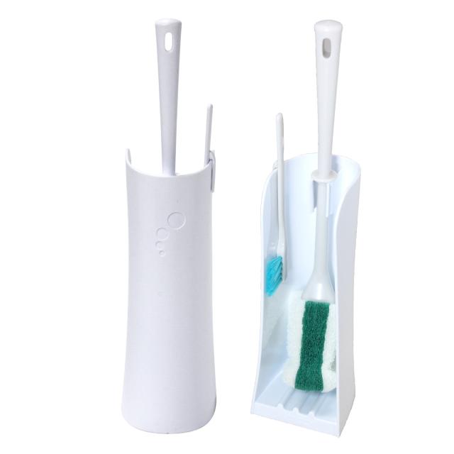 ニオイの元になる便器のかくれ汚れもしっかり落とせる、スマートなトイレクリーナー3点セットです。フチ裏が洗いやすいトイレクリーナーとオープンタイプの収納ケース、隙間など細かなところも洗える便利なミニブラシがセットになっています。柄とケースに抗菌加工が施されています。