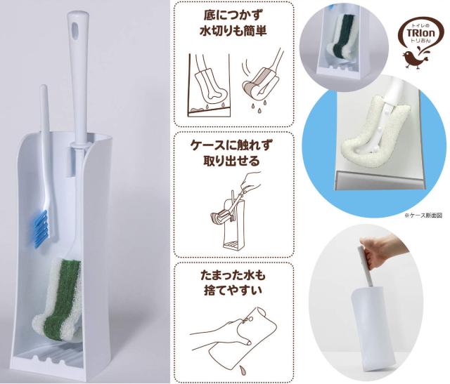 ●フチ裏が洗いやすいトイレクリーナーとオープンタイプの収納ケース、隙間など細かなところも洗える便利なミニブラシがセットになっています。