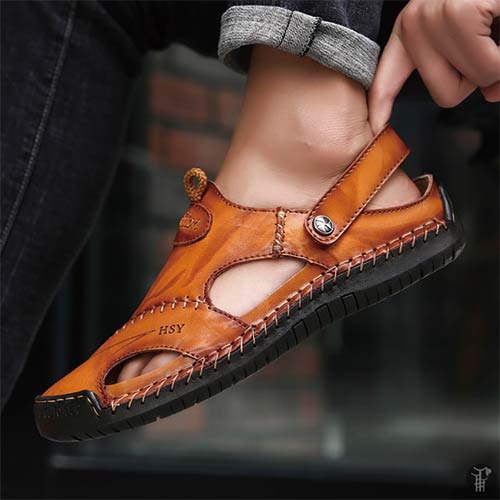 衝衝吸収性にも優れ、長時間歩いても疲れにくいレザーサンダル靴。