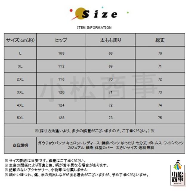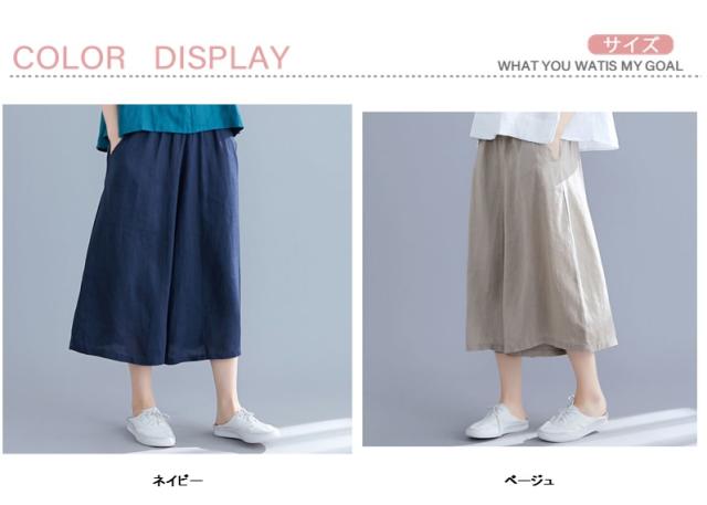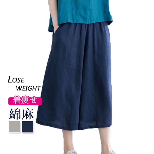 ガウチョウパンツ キュロット レディース 綿麻パンツ ゆったり 七分丈 ボトムス ワイドパンツ カジュアル 細身 体型カバー 大きいサイズ 送料無料