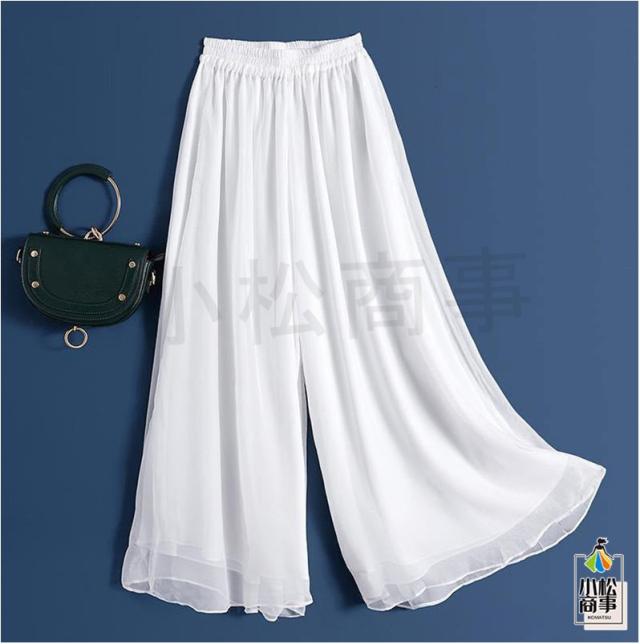 ワイドパンツの上にシフォンが重なっているデザインのパンツです。