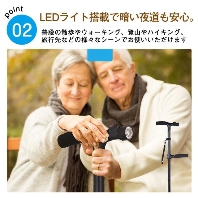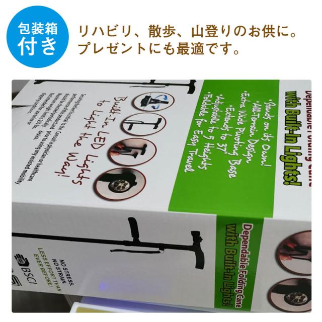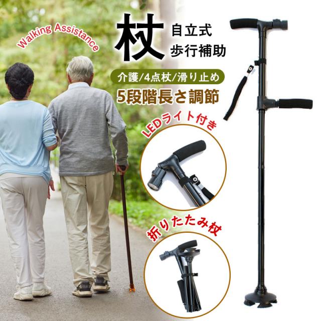 杖 自立式 折りたたみ杖 介護 4点杖 軽量 LEDライト付き ステッキ ギフト 包装箱付き 敬老の日 男性 女性 補助ハンドル付き 母の日 父の日